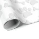 Graue Hundepaw-Drucke im Cartoon-Stil und Keramik-Kacheln im Knochenmuster. Imitat Papier-Ausschneideeffekt. Maßgeschneiderte Geschenkpapier-Rollen. Geschenkpackidee für Hundefreunde und ihre Haustiere.