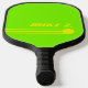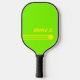 Acid-grüne Hintergrundfarbe mit drei lebhaften gelben Streifen, einem Kreis (Kugel) und individuelle Name (sportlicher Schriftart)... sehr bunt Paddles.