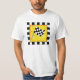 Mit diesem T-Shirt mit schwarz-weißer Schachflagge zeigen Sie Ihre Liebe des Rennens (Nascar, Schmutz, Drag, Motorrad, etc.). Anpassbar, sodass Sie Ihren Namen, Standort, Geschäftssitz oder Favoriten-Treiber personalisieren können oder Glückwünsche entweder unter der Flagge oder unter dem gesamten Design sagen können - es ist einfach, anzupassen, d zu einem Wort oder Datum oder gelöscht. Eine schwingende schwarz-weiße Schachflagge zentriert sich auf einem texturierten gelben Hintergrund. Ein schwarz-weißer Schachbrettrahmen umgibt die Kunst. Sie können das Shirt in eine andere Farbe anpassen. Das ist ein originelles Kunstdesign von Phyllis Dobbs.
