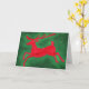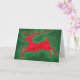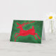 Eine rote Rentiere-Silhouette springt über einen grünen Hintergrund. Klassische Weihnachtsfarben auf sehr malerische Weise mit offensichtlichen Pinselstrichen. Lass diesen Hirschkram mit dieser anpassbaren Weihnachtskarte in jemandes Herz. Der Text im Inneren ist anpassbar!