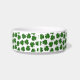 Dieses lustige Muster zeigt strukturierte grüne Kleber auf weißem Hintergrund. Ideal für den St. Patrick's Day. Passen Sie diese Schüssel mit dem Namen Ihres Haustieres an!