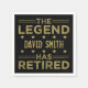 Ein lustiges Ruhestandsdesign, das "die Legende hat sich zurückgezogen", in stilvollem Schwarz und Gold. Personalisieren Sie es, indem Sie den Namen des Rentners hinzufügen.