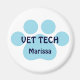 Dieser Magnet zeigt einen blauen Pfotendruck und kann mit dem Text Ihrer Wahl angepasst werden.