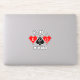 Individuelle Vinyl Aufkleber für Las Vegas Hochzeitspaar. Personalisieren Sie mit Ihren eigenen Initialen und Datum der Ehe. Cooles Spieldesign mit Herz und Pik spielen Karten Anzug. Machen Sie Ihre eigene Dekoration und Dekoration.