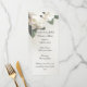 Diese wunderbare Vorlage erlaubt Ihnen, die Details auszufüllen - ersetzen Sie einfach unseren Text durch Ihren. Die Einrichtung ist mit weißen Blume gestaltet, um eine weiße Speisekarte für Hochzeitsmahlzeiten zu genießen.