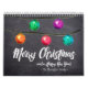 Aquarellfarbene Weihnachtsbälle und ein schöner Schrifttyp schmücken dieses Design vor einem Chalkboard-Hintergrund. Personalisieren Sie mit Ihrem Familiennamen und passen Sie jeden Monat Ihre Fotos Ihrer Wahl an.