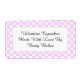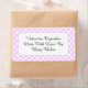 Ein individuelles Backen-, Handwerk- oder Seifenlabel mit Skriptbuchstaben und weißen Polka-Punkten groß und klein in einem lustigen Retro-Hintergrund Muster auf rosa. Passen Sie es an, um Ihren eigenen Text hinzuzufügen, die Hintergrundfarben zu ändern, Ihr Bild hochzuladen und vieles mehr, sogar Ihr Design für später retten.
