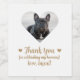 Feiern Sie Ihren besonderen Tag mit diesen niedlichen Hochzeitsweinetiketten. Personalisieren Sie sich einfach mit dem Namen Ihres Hundes und ihrem Foto. Dieses elegante Design beinhaltet einen goldfarbenen Script-Schriftart, der sagt: "Danke, dass du meine Menschen gefeiert hast! Liebe, ___". Dieses Design umfasst auch zwei goldene Herzen und einen herzförmigen Ort, wo man ein Foto des Hundes hinzufügen kann.