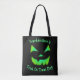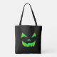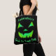 Eine dunkelgrüne Jack-oder-Laterne-Oberfläche verspottet die Vorder- und Rückseite dieser individuell gestaltbaren Trick-oder-Leckerei-Tote-Tasche! Diese Tasche leuchtet nicht im Dunkeln, sie imitiert einfach den Effekt. Viel Spaß mit dieser Tasche zu diesem Halloween!