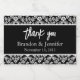 Schick Hochzeit Mini-Sekt oder Weinetiketten bereit für Sie zu personalisieren mit Ihren eigenen Informationen. Das elegante schwarz-weiße Damast-Muster schmückt das obere und untere Teil dieses schwarzen horizontalen Etiketts. Personalisieren Sie den Text für Ihren Hochzeitsempfang. Ideal für Ihren Hochzeitstisch oder Gast-Favoriten.