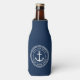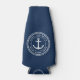Eine Flasche cooler mit einem weißen, eleganten Anker- und SeilEmblem mit individuelle Name und Bootsnamen auf dunkelblauem Hintergrund.