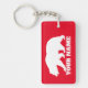 Maßgeschneiderter Schlüsselanhänger mit großer grizlly Bär Silhouette. Fügen Sie Ihren eigenen personalisierten Namen oder Monogrammbuchstaben hinzu. Rot und Weiß. Anpassbare Farben.