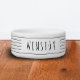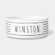 Maßgeschneiderte Schwarz-Weiß minimale Bauernstil dünne mehrStreifen Haustierfutter oder Wasserschüssel mit Katz- oder Hundename auf der Seite bedruckt. Mit dem erweiterten Vorlageneditor können Sie Schriftart-, Hintergrund- oder Stripfarben so ändern, dass sie mit Ihrem Dekor oder Ihren Lieblingsfarben übereinstimmen.