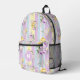 Dieser Allover-Rucksack mit einem lebendigen gestreiften Lavendel und gelben Blumenmuster, das perfekt für Schulkinder ist, sorgt dafür, dass ihr Wesentliches mit Stil und Komfort getragen werden kann. Dieser Rucksack ist für die praktische Anwendung konzipiert und verfügt über verstellbare gepolsterte Schultergurte, ein geräumiges Interieur, eine Meshside-Tasche und ein internes Identifizierungszeichen. Es bietet reichlich Platz für Bücher, Snacks und andere wichtige Dinge, ohne die leichte Struktur zu beeinträchtigen. Mit der Textvorlage können Sie den Kinderstart in den Rucksack einbinden.