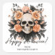 Ein Vintag inspiriert Halloween-Aufkleber mit einem gotischen Schädel, umgeben von sanften Blumen in gedämpften Herbsttönen. Personalisiert mit Ihrem Familiennamen oder Ihrer Botschaft, sind diese Aufkleber perfekt für Leckerei-Taschen, spukhafte Gastgeschenke oder das Hinzufügen einer eleganten gotischen Touch zu saisonalen Verpackungen. Eine lustige, stilvolle Wahl zu Halloween.