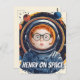 Große Postkarte mit Astronautenthema für Kinder. Es gibt einen runden Rahmen, den Sie mit Ihrem eigenen Foto und Ihrem eigenen Text füllen können! Diese Postkarte eignet sich hervorragend für Geburtstage und Schulveranstaltungen für Kinder.