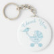 Genießen Sie Ihre Babydusche mit dieser niedlichen und individuell gestaltbaren Mama Bird Baby Shower Gastgeschenk Key Chain. Das Bild zeigt einen Mama-Vogel, der ihren Babyvogel in einer Kinderwagen füttre. Dieses Design enthält den Text "Danke" in aquamariner Schrift. Ändern Sie den Text in die Wörter Ihrer Wahl, indem Sie einfach auf die Schaltfläche Anpassen rechts neben dem Bild klicken.