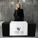 Eine benutzerdefinierte gedruckte Tapisserie, die an einen Tischrunner für Ihren Pop-Up-Shop angepasst werden kann. Passen Sie den Tischrunner mit Ihrem modernen Text an und erstellen Sie Ihren eigenen Tischläufer für Ihre handwerklichen Shows und Vendor-Events. Ideal für Messen, Pop-Up Shops, Expos etc.