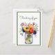 Eine Aquarellillustrierung hübscher Gelb-, Rosa-, Rot- und Blütenblumen in einem Glas. Diese botanische Illustrationskunst ist perfekt für eine einfache Begrüßung, aber Sie können den Text zu Ihrem bevorzugten Gruß ändern. AI unterstützte Grafik, die mit kommerziellem Einsatz erworben wurde. Kunstwerk: DreamCafeArt