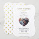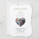 Fügen Sie Ihr eigenes Foto zu dieser Einladung hinzu und personalisieren Sie es mit Ihren Informationen. Herzgeformtes Foto Save the Date Einladung. Moderne, elegante Hochzeit Save the Date Einladung für Paare, die eine einfache und klassische Typografie Stil Save the Date Einladungen möchten, ihre Gäste zu ihrem wichtigen Tag einzuladen. Sie können zwischen verschiedenen Farbstilen und auch zwischen verschiedenen Papieroptionen wählen, die Ihren persönlichen Stil am meisten Anzug.