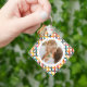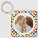 Custom Foto Moderner Personalisierter Schlüsselanhänger mit farbenprächtigen, modernen geometrischen Mustern mit Ihrem bevorzugten Foto in der Mitte. FOTO TIPP: Zentrieren Sie Ihr Foto vor dem Hochladen nach Zazzle. Perfekt als Geschenk für Mama, Papa, Großeltern, Freunde, Familie und mehr. Von Evco Studio entworfen www.zazzle.com/store/evcostudio