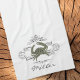 Maßgeschneidertes Crab Küchentuch - Mit dem ersten und zweiten Namen individuell anpassen. Die Buchstaben sind dunkelgrau und passen zu den Schnörkeln. Krebse ist olivgrün.