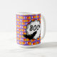 Hier ist eine niedliche, lustige, farbenfrohe Tasse mit dem Crazy Candy Corn Black Bat Halloween Design. Die Nachricht ist Boo! aber Sie können den Text personalisieren. Nette "spirituelle" Herbergsgeschenke oder Gastgeschenke, füllen Sie eine Tüte Kekse, oder vielleicht Süßmais!