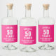 Maßgeschneiderte Mini Liquor Flaschen Labels für 50. Geburtstag. Rosa und weiße Vorlage mit individuelle Name und Geburtstagsgrüße. Erstellen Sie Ihre eigenen, starken Getränketiketten. Cooles Gastgeschenk für Gäste, Freunde und Familie.