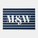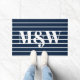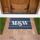 Moderne schicke, dunkelmarineblau-weiße Streifen personalisierte Custom Paar Monogramm Initialen elegant, nautische Doormat