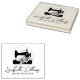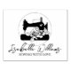 Diese benutzerdefinierte Briefmarke verfügt über eine Nähmaschine mit Blume, einem Namen und einem Slogan.