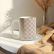 Mit unserer Retro-Bräunlich-beige-Schachbrettmuster-Tasse aus Monogramm - die perfekte Mischung aus Nostalgie und Personalisierung! Diese stilvolle Tasse zeichnet sich durch ein Retro-Schachbrettmuster aus, das sich um die gesamte Oberfläche zieht und ein lebendiges, auffälliges Design schafft. Die warmen Farbtöne verleihen ihm eine zeitlose, Vintage Optik, die sich in jeder Küche oder in jedem Büro bemerkbar macht. Was diese Tasse wirklich besonders macht, ist das maßgeschneiderte Monogramm, das in einem der Schachbrettfelder platziert ist. Egal ob Sie Ihren Morgenkaffee genießen oder Ihren Lieblings-Tee trinken, diese personalisierte Touch verleiht Ihrem Trinkbehälter eine gewisse Eleganz und Individualität. Ob als Geschenk für einen Liebsten oder als Leckerei für sich selbst, unsere Retro-beige-Schachmuster maßgeschneiderte Monogramm-Kaffeemaschine-Tasse ist eine reizvolle Art, Ihre Getränke stilvoll zu genießen!