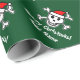 Weihnachtspapier für die benutzerdefinierte Piratenflagge | Das Design des Weihnachtsschädels. Die Weihnachtsgeschenkpackung mit Skelett und Knochen Pirat Kopf mit einem roten Hut des Weihnachtsmanns. Anpassbare schwarze Hintergrundfarbe. Personalisierbar mit Namen und Urlaubswünsche / Grüße. Grün und Rot.