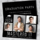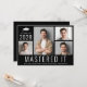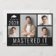 Moderne Meister absolvieren schwarze Abschluss Ankündigung und Party Einladung mit einer 4-Foto-Collage, "Mastered It" geschrieben in großen weißen Hauptstädte und seine oder ihre Klasse Jahr, Name und Schule oder Universität in der einfachen weißen Typografie. Fügen Sie auf der Rückseite die Details zum grad-Party hinzu.
