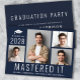 Moderne Master-Abschluss blauen Abschluss Ankündigung und Party Einladung mit 4 Fotos, "Mastered It" geschrieben in großen weißen Hauptstädte und seine oder ihre Klasse Jahr, Name und Schule oder Universität in der einfachen weißen Typografie. Fügen Sie auf der Rückseite die Details zum grad-Party hinzu.