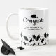 Feiern Sie Ihren Master-, Doktorat- oder Bachelor-Abschluss mit dieser phantastischen Tasse, in der Absolventen in die Luft geworfen und Glückwünsche Text. Fügen Sie den Namen, die Schule, den Abschluss usw. Ihres Abschlusses hinzu. Die perfekte Kaffee-Tasse für den Job, die Schule oder auf der Zuhause.