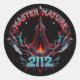 A Master Nature 2112 Round Sticker with an image inspired by Vintage psychedelic sci-fi form.