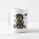 This fun mug design is for geek dads. It has a pixel art-style illustration of a brunette dad with glasses and a funny text saying "Master of Bytes & Bedtime Geek Dad".