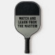 Das Pickleball-Paddel "Learn From the Master" verfügt über eine schwarze Diamantplatte und eine silberne untere Hälfte. Dieses Paddel ist perfekt für Meisterspieler, die ihre Fähigkeiten zeigen möchten.