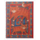 Eine Marmeladenkatze und ein Kätzchen stehend auf einer rot, blau und gelb getauchten Matte. Notebook mit individualisierbarem Design für Sie, um mit Ihrem eigenen Text, Bildern und Ideen zu personalisieren. Aus einem originalfarbenen Bleistift zeichnend Bild.