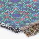 Ein kompliziertes, kaleidoskopisches Muster bedeckt die Oberfläche mit lebhaften Blautönen, Grün und Rot. Geometrische Formen verflechten sich nahtlos und schaffen ein faszinierendes, symmetrisches Design. Die Wirkung ist insgesamt lebendig und visuell faszinierend.