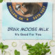 Von der weltberühmten und völlig mythischen Matanuska Elche Milchfarm in Willow Alaska; nicht weit von Anchorage entfernt. Ein BullenElch (Alces alces) hält ein Glas frische Elchmilch. Der Elch ist von einem kreisförmigen Banner umgeben, das die blaue und gelbe Alaska-Staatsflagge trägt. Auf dem Banner erscheint das Textlesen "MATANUSKA MOOSE MILK", "WILLOW, AK" und "ESTD 1957". Unter dem Banner erscheinen zwei anpassbare Textzeilen, "TRINK MOOSE MILK" und "It's Good For You.". Sie können Schriftart und Farbe dieses Textes ändern. Ob Sie es glauben oder nicht, es gibt Elchsereien, eine kleine Zahl in Russland und eine in Schweden. Elchmilch wird in Russland gewerblich gezüchtet. Ein auf dem Bauernhof geborenes Elchkalb wird innerhalb von 2-3 Stunden nach der Geburt von seiner Mutter genommen und von den Menschen aufgezogen. Es wird zuerst mit einem Milchersatz gefüttert und später aus einem Eimer gefüttert. Die Tiere prägen und hängen sich an Menschen an. Laut Daten über den russischen Elch ist die Milch hoch im Butterfett (10 %) und fest (21,5 %); Untersuchungen über die amerikanische Elchmilch befinden sich in einem weniger fortgeschrittenen Staat als in Russland, scheinen aber darauf hinzudeuten, dass amerikanische Elche noch höhere Feststoffe in ihrer Muttermilch haben. Elchmilch soll etwas salzig und bitter sein; mit einem Hauch von Kiefer- oder Fichtennadeln. Elchmilch wird in Russland gewerblich gezüchtet. Ein auf dem Bauernhof geborenes Elchkalb wird innerhalb von 2-3 Stunden nach der Geburt von seiner Mutter genommen und von den Menschen aufgezogen. Es wird zuerst mit einem Milchersatz gefüttert und später aus einem Eimer gefüttert. Die Tiere prägen und hängen sich an Menschen an. Wie bei Milchvieh werden Kälber nach kurzer Zeit von ihren Müttern entfernt.Die Russen sagen, dass Elche die Milchmädchen bald als ihren Ersatz als ihre Ersatzkälber anerkennen. An dieser Stelle werden sie in den Wald freigelassen, aber besuchen Sie den Bauernhof jeden Tag, um während der Stillzeit gemolken zu werden (in der Regel bis September oder Oktober). Im Winter wandern die Tiere frei durch den umliegenden Wald. Aber sie streunen normalerweise nicht zu weit, verbringen aber einen Großteil ihrer Zeit auf nahegelegenen Waldflächen, auf denen Bäume gefällt werden, und fütterte auf den Nebenprodukten der Holzbearbeitung. Und sie kennen den Bauernhof als Ort für eine tägliche Ration Hafermehl und als sicheren Ort, um ihre Jungen zur Welt zu bringen. Ein russisches Sanitorium versorgt die Einwohner mit Elchmilch, weil man glaubt, dass es ihnen hilft, sich von Krankheiten zu erholen oder chronische Krankheiten wirksamer zu bewältigen. Einige russische Forscher haben empfohlen, Elchmilch für die Prävention gastroenterologischer Erkrankungen bei Kindern einzusetzen. Die Elche (Elche genannt Elk in Europe) Hofbetrieb (Älgens Hus) in Bjurholm (Schweden) gilt als der einzige Erzeuger von Elchkäse weltweit. Der Käse verkauft für etwa 500 Dollar pro Pfund. Das Restaurant des Algens Hus bietet Geschirr mit Elchkäse. Käse schlicht mit Brot oder Keksen, oder besser noch, gefrorene Elchmousse. Am besten mit Himbeeren serviert.