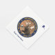 Gut geeignet für ein Party, natürlich mit Keksen. Von der weltberühmten und völlig mythischen Matanuska Elche Milchfarm in Willow Alaska; nicht weit von Anchorage entfernt. Ein BullenElch (Alces alces) hält ein Glas frische Elchmilch. Der Elch ist von einem kreisförmigen Banner umgeben, das die blaue und gelbe Alaska-Staatsflagge trägt. Text, "MATANUSKA MOOSE MILK", "WILLOW, AK" und "ESTD 1957", erscheint auf dem Banner. Fügen Sie Ihren eigenen zusätzlichen Text zu anpassen.
