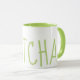 Mit dieser Matcha-Tasse mit grünem Text, spielerischer, kühner Schrift und einem fröhlichen, grünen Interieur, fügen Sie Ihrem Morgenprogramm einen Pop Farbe hinzu. Das minimalistische und dennoch niedliche Design ist perfekt für einen Cocktail oder einen grünen Tee geeignet. Feiern Sie Ihre Liebe für den japanischen grünen Tee mit dieser fröhlichen, stilvollen Tasse.
