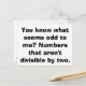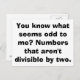 Weißt du, was mir seltsam erscheint? Zahlen, die nicht durch zwei voneinander getrennt werden können.