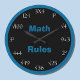 Looking for a math problem clock? This great math wall clock feys the words "Math Rules" in blue on black background in the center with a coordinating blue border. The numbers on the clock are printed in white and there are math problems which must be solved in order to know the time. This clock is perfect for the classiroom or for any room where Math Rules! Urheberrecht Kathy Henis