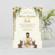 Matikoor Haldi indische Hochzeitsvorlage Einladung sofortigen Download mit einer Bräutigam Cartoon Karikatur in Elfenbeinoutfit und weißen goldenen Glocken Blumengärten
