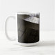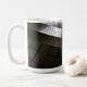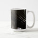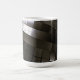 Monochrome architektonische abstrakte aus gebogenen Stahlpaneelen und Gittermarken - schmale, reflektierende Linien auf einer ummantelten Keramik-Tasse. Reine Geometrie mit kinetischem Fluss. Eine Welle stahlartiger Paneele biegt sich in Licht und Schatten ab und erzeugt ein rhythmisches Gitter, das sich modern, präzise und ruhig anfühlt. Die monochrome Palette passt zu kreativen Schreibtischen, Studioregalen und minimalistischen Küchen - ein elegantes Stück des Alltags und ein scharfes Geschenk für Architekten, Designer und Fans geometrischen Designs.