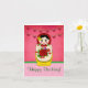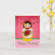 Kundengebundene Geburtstags-Karte: Bunter Matryoshka/Babushka/Russian Puppen-Entwurf/rosa Damast-Muster