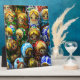Auf Russisch: м а т р ш к ё. Ein Foto russischer Tee, Babuschka oder stapelende Puppen aus einem Souvenirladen an einem Moskauer Bahnhof. Die nistenden Puppen sind in hellgrün, blau, aqua, rot mit verschiedenen Stilen gestrichen. Einige haben Glitzer. Sie können dem Design auch einen personalisierten Text, einen Monogramm-Brief oder Ihr eigenes Foto hinzufügen. Klassische russische Stapelpuppen. Bekannte traditionelle Souvenirs aus Russland. Russisches Foto zum Erbe. Handgefertigte traditionelle gemalte Nistpuppen.