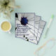 TEXT: "Gesegnet sind diejenigen, die trauern, denn sie werden beruhigt sein." (Matthew 5:4) Bild: Weiß und blau mit Regentropfen.
